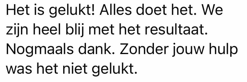 “Super fijn geholpen door Lucas bij het samenbrengen van mijn elektra systeem. Bovendien is het eindresultaat zeer professioneel. Ik ben blij dat ik dit gedeelte heb uitbesteed want had dit nooit zelf kunnen realiseren. Bovendien nog wat bijgeleerd door zelf mee te helpen ook. Kortom, top ervaring!”