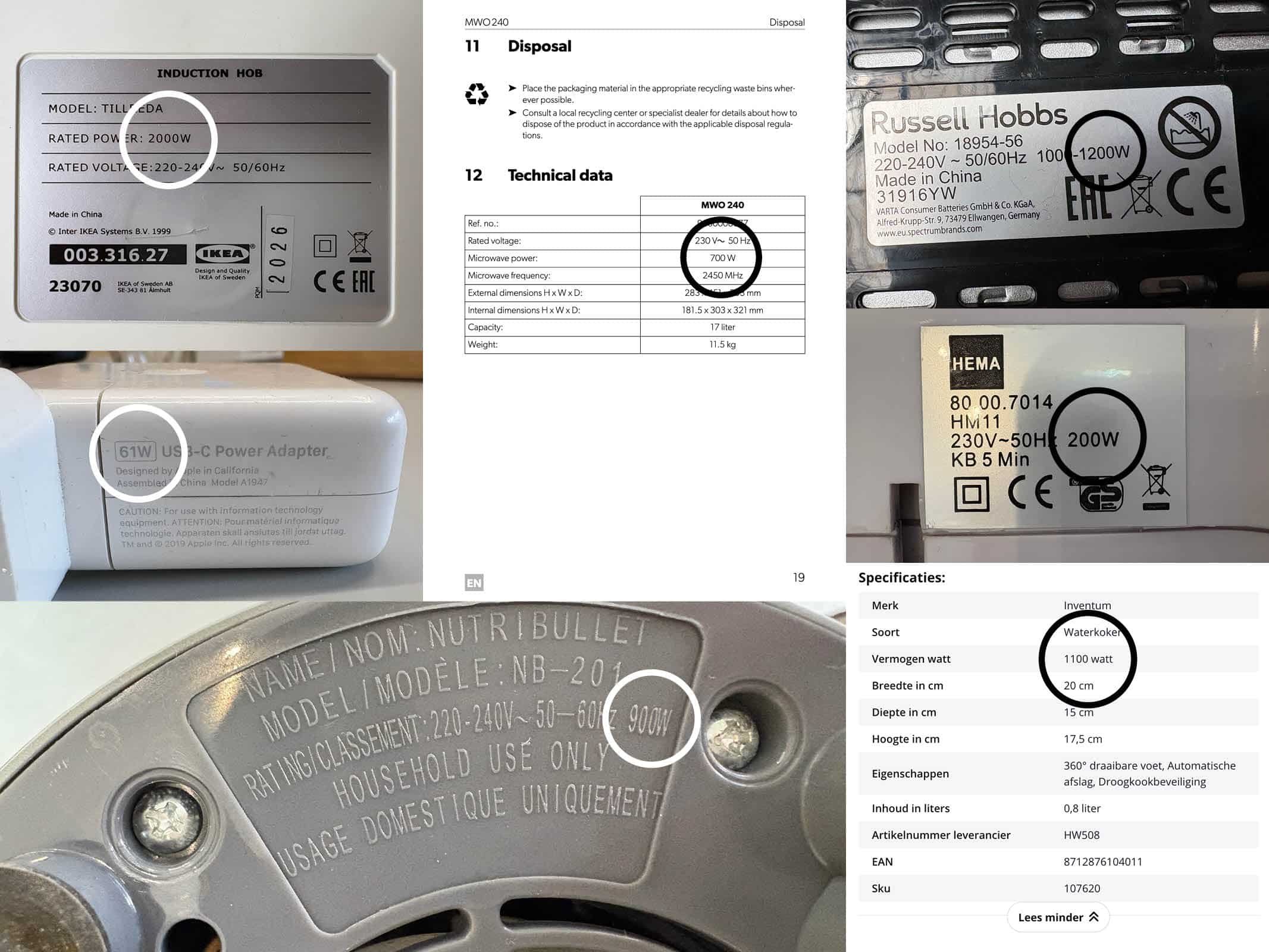 Het vermogen dat een apparaat nodig heeft, wordt uitgedrukt in hoeveelheid 'Watt' en bepaald het minimale vermogen van je omvormer.